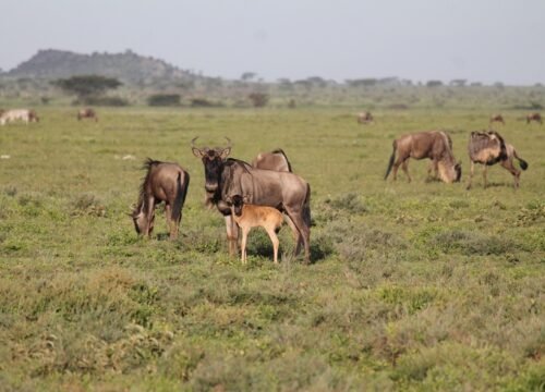 A 4-day fly-in calving safari is one of the most thrilling short safaris in Tanzania, designed to immerse you in the dramatic wildebeest calving season in the Ndutu Area and Southern Serengeti. Between January and March, over 400,000 wildebeest calves are born within a few weeks, attracting large predator concentrations and creating one of nature’s greatest wildlife spectacles.